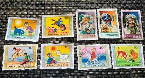 もしかしたら以前のブログで出したかもしれませんが、選別するのが難しいので 出しちゃいますσ(^_^;) これはまるで絵本のようなイラストですねぇ 生活の様子をイラストにしてるのかな、、と右上3枚は、、なんだか特殊 上の3枚はモンゴルみたいですね 下の切…